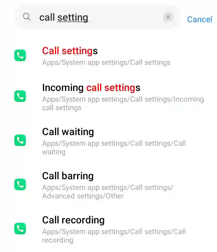 2. Call Setting से