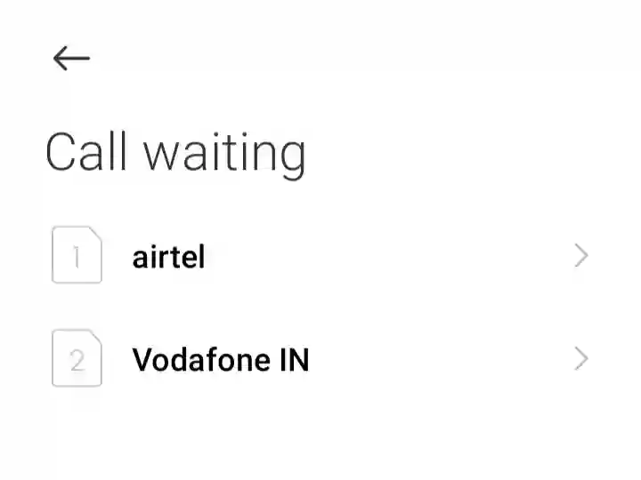 Step 2. अब आपको इस Call Waiting Setting पर कि्लक करना है जसके बाद आपको अपने मोबाइल में लगे दोनो सिम कार्ड दिखाई देगा आप जिस सिम कार्ड पर Call Waiting शुरू करना चाहते है उस सिम कार्ड पर कि्लक करे।