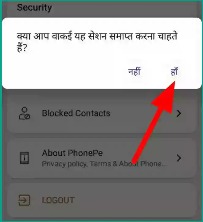 यहाँ पर आपको “Yes” ऑप्शन पर कि्लक करना है जैसे आप Yes पर कि्लक करते है आपका Phone Pe Account Logout हो जायेगा मतलब कि phone pe logout from all devices से लॉग Out हो जाता है।